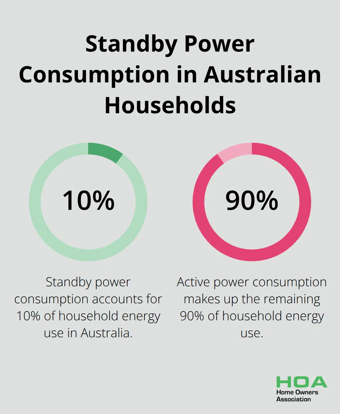 Pie chart showing that standby power consumption accounts for 10% of household energy use in Australia - home energy monitor australia