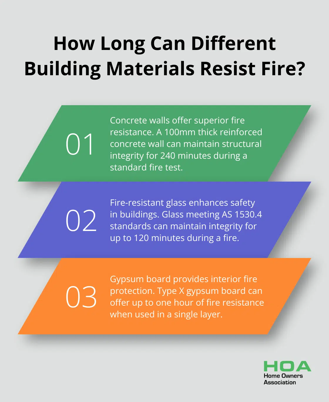 Building codes across Australia have strict requirements for fire-resistant materials in construction. The National Construction Code (NCC) sets out specific standards for different building types and occupancies. For example, multi-story residential buildings must have fire-resistant floors and walls between units to prevent fire spread.